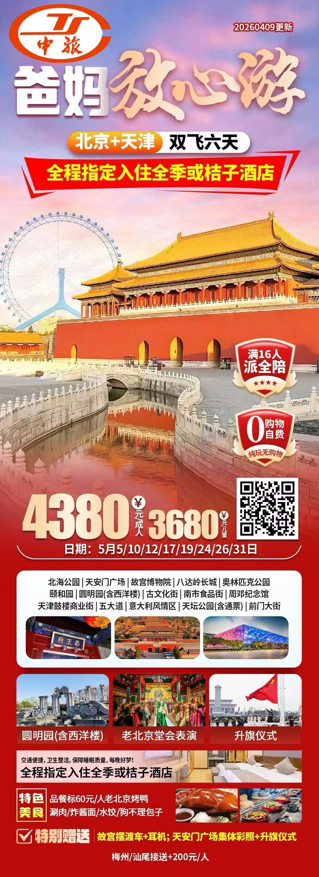 北京、天津直航双飞六天游